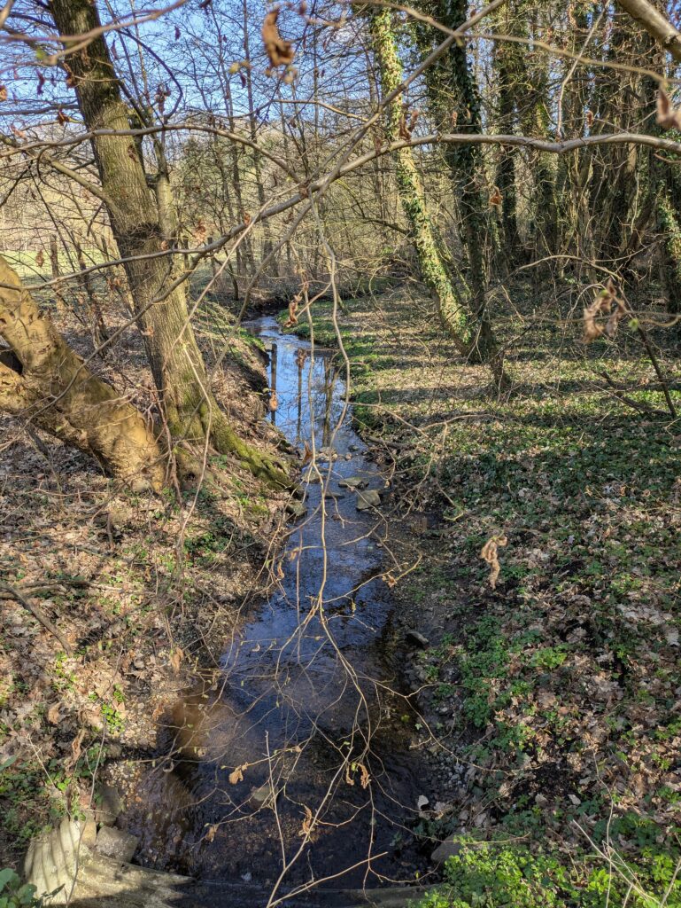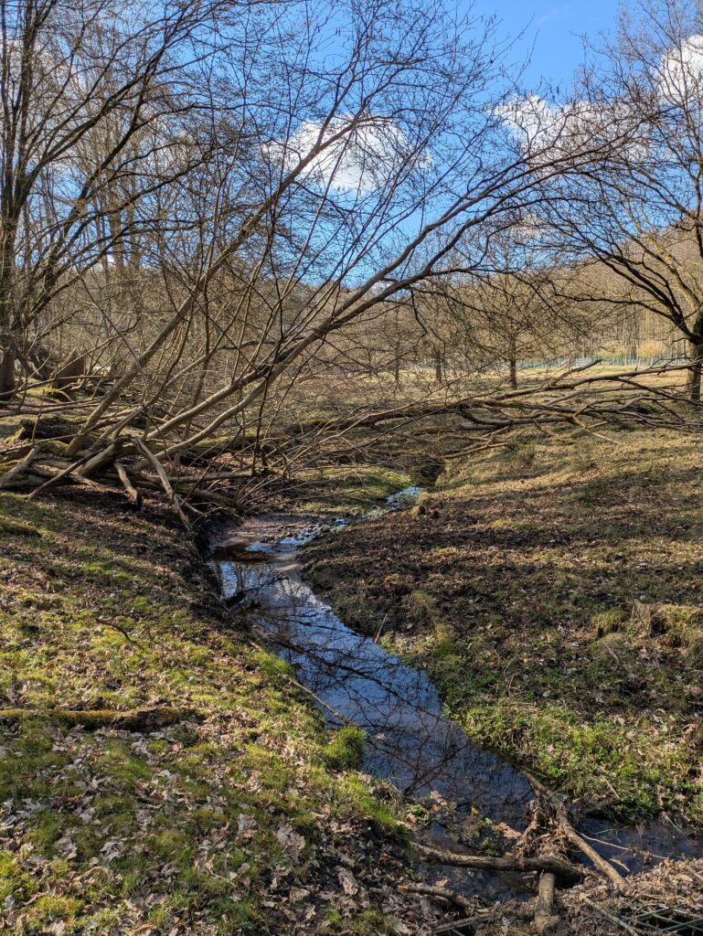Waldgebiet in der Wik – mit Wiesenflächen, Tiergehege und kleinen Bächen.