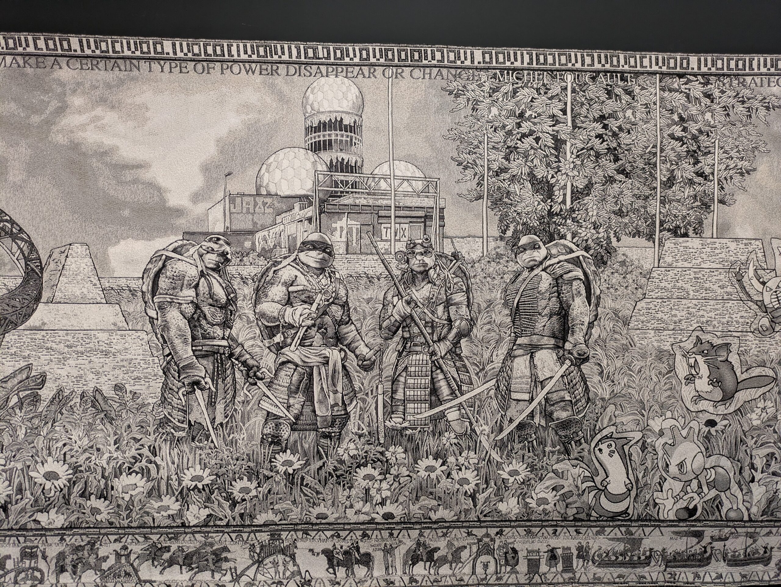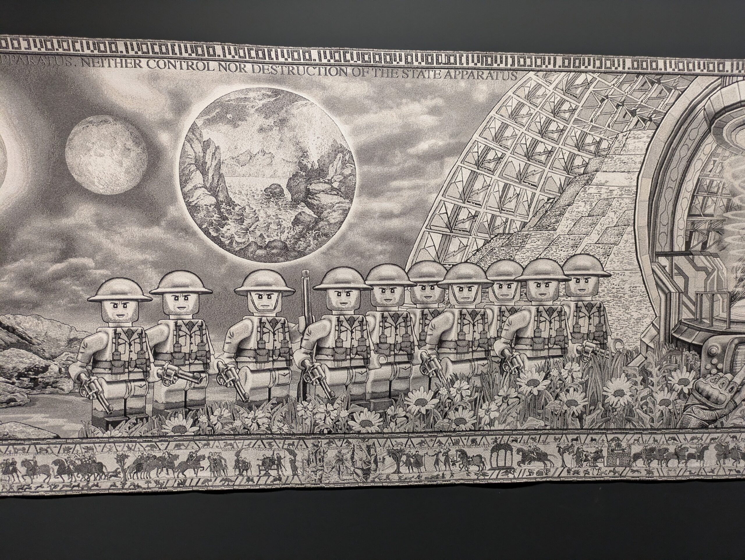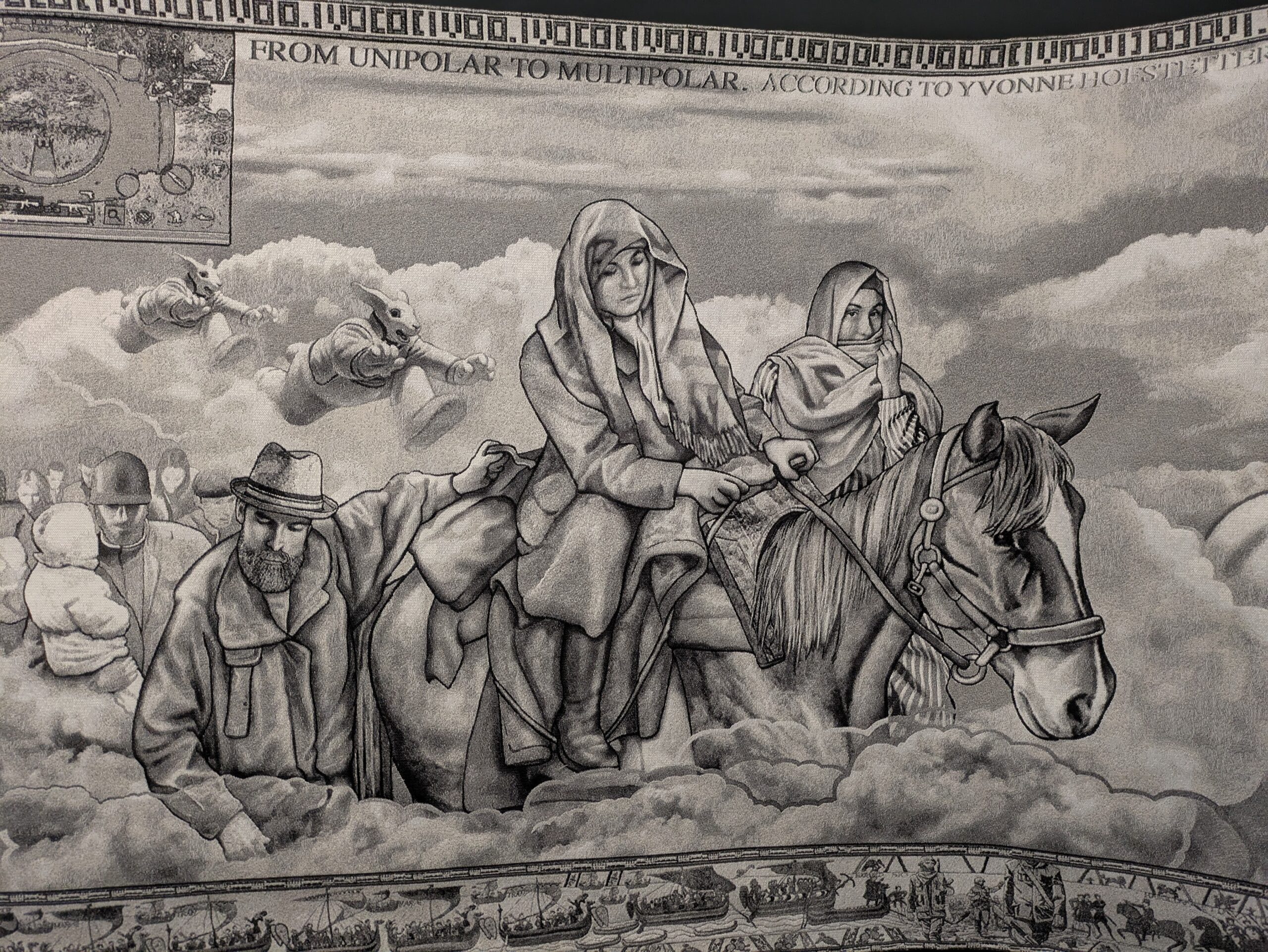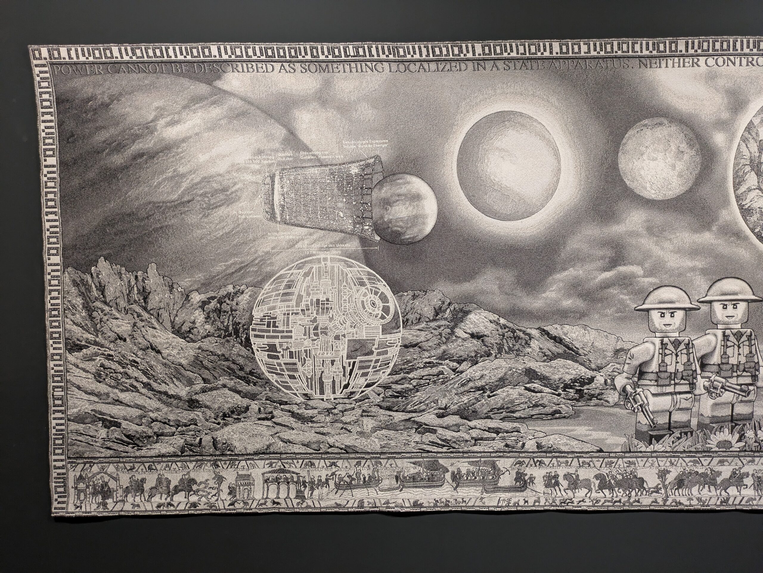 Medientapisserie, digitale Montage, Jacquard-Gewebe, 120×3000 cm