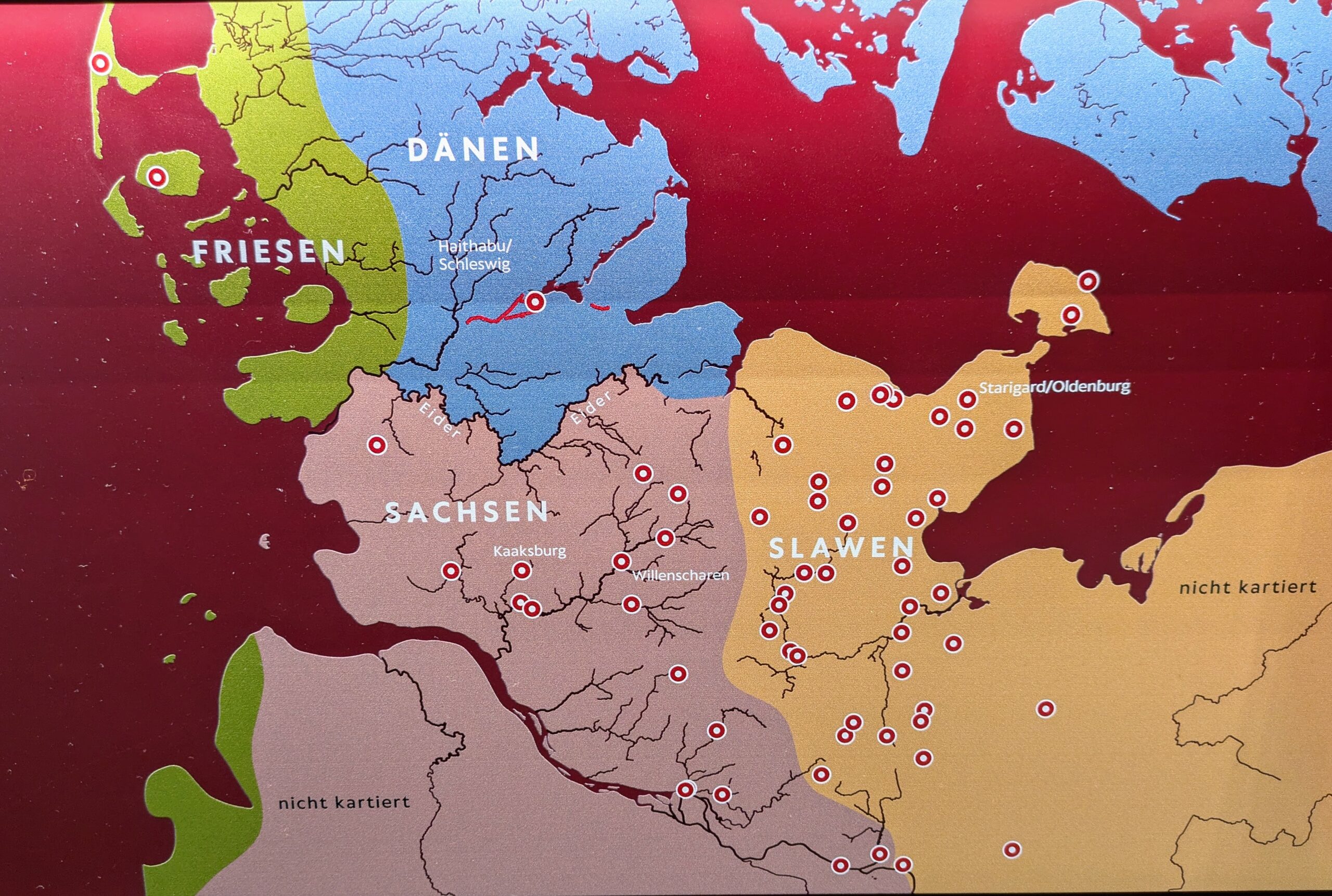Auf dem Gebiet des heutigen Schleswig-Holstein sind im frühen Mittelalter bzw. in der Wikingerzeit vier verschiedene Ethnien ansässig – Friesen, Dänen, Sachsen, Slawen. Das sächsische Gebiet gehört ab 810 zum Fränkischen Reich und nach dessen Teilung 843 zum Ostfränkischen Reich.