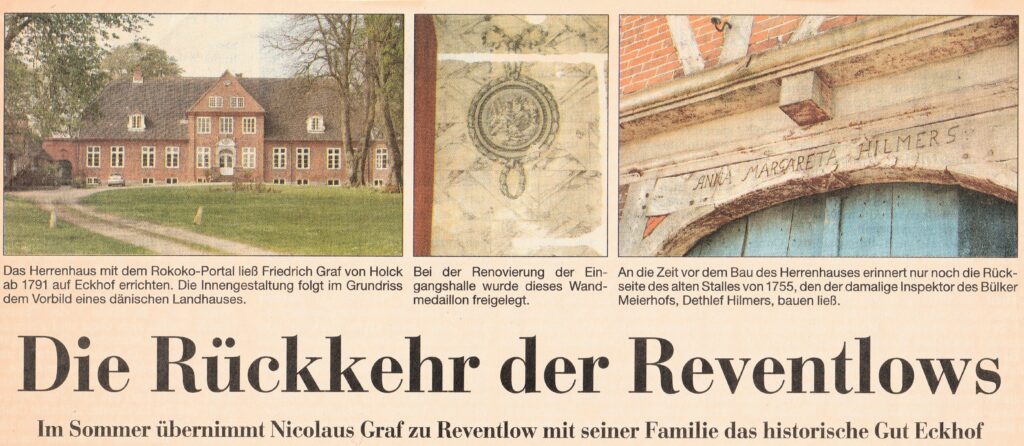 • Durch Erbfolge ging das Gut 1972 in den Besitz der Familie zu Reventlow über.
