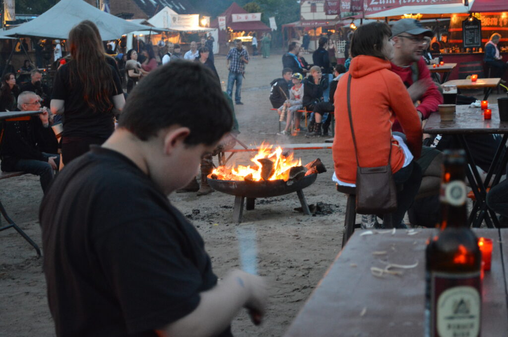 Nach einer Nacht im Zelt – Morgenrunde mit Quentin auf der Allee und dann Frühstück im Restaurant.